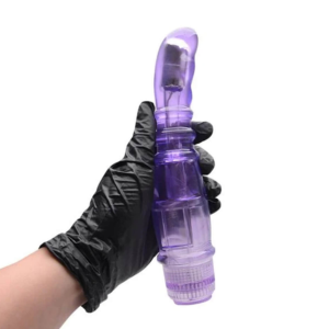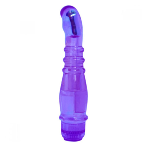 Vibrador feminino de multivelocidade, à prova d´água, produzido em gel, livre de látex, macio e flexível, com ponta levemente curvada para estimular o ponto G, textura anelada e motor interno localizado na ponta para melhor satisfação